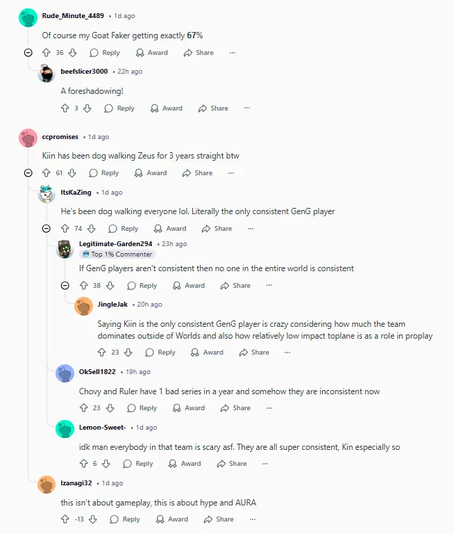 当然了,我的GOAT Faker拿到了整整67%的票数。